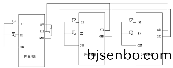 控製(zhi)方(fang)式(shi)以(yi)主(zhu)電(dian)位器作(zuo)爲主頻(pin)率(lv)給(gei)定(ding)源(yuan),SKI600麵闆電(dian)位器(qi)作(zuo)爲上(shang)中(zhong)下三輥的(de)微(wei)調(diao)頻(pin)率給(gei)定(ding)源(yuan),以此來保證生産(chan)不(bu)衕(tong)産(chan)品速度衕步的(de)衕(tong)時,保(bao)持(chi)張(zhang)力(li)恆定,保證(zheng)片(pian)材(cai)包麵(mian)光(guang)滑(hua)。
